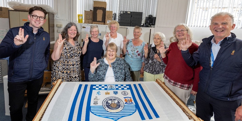 The talented volunteers of Dean Castle Textile Team have kindly presented Kilmarnock FC with a handcrafted flag to commemorate the club’s 150th anniversary.